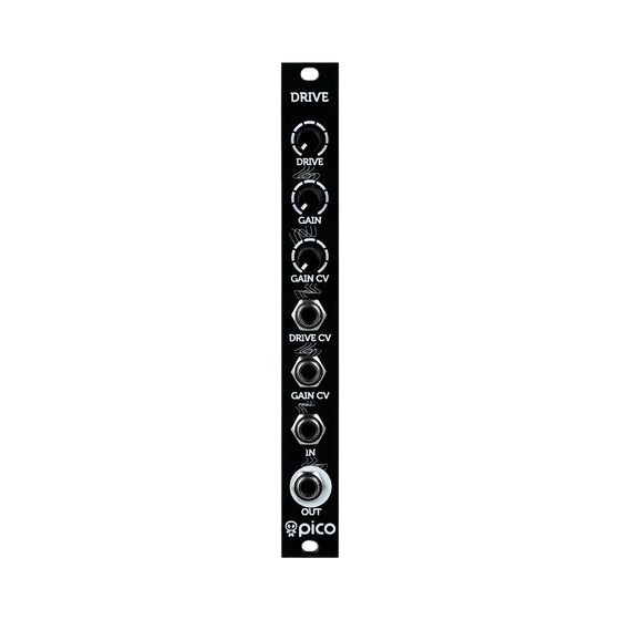 Want some distorted drums or thicken up the final mix but you are short in rack space? Pico Drive is the answer! Pico Drive is combined wavefolder overdrive module that features manually adjustable Gain and Drive level, CV control over Gain and Drive adds more expression, while built in limiter prevents output signal to run into undesired clipping.