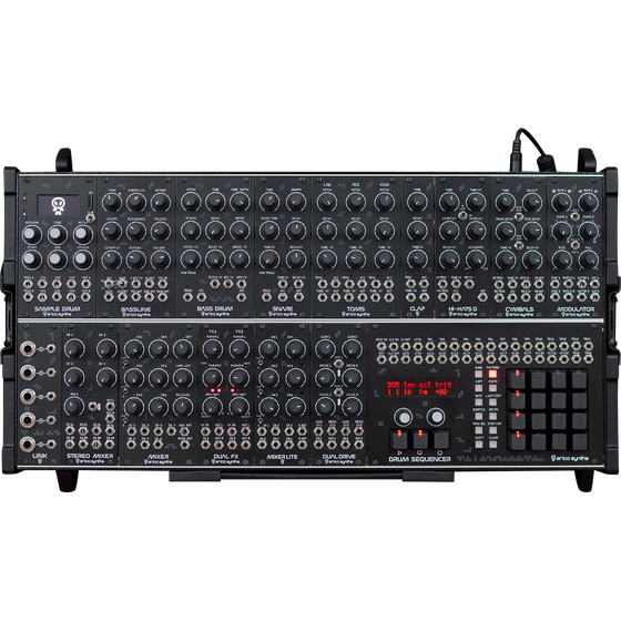 The Techno System is a top-of-the-line hybrid modular drum machine. Everything has been done right here. The analog and digital modules sound great and both the analog and digital effects are those of the highest quality. Build quality and size are just as high quality and you have a secure feeling, no matter how often you drag the system to performances. And for a live performance you don't really need more than what is offered here. The Techno system is simply one of the best drum machines available on the market today and is worth every penny. But that does not mean that the price would be high, because a TipTop drum system would cost a lot more and is quickly overshadowed by the Erica Synths Techno system. - Bonedo