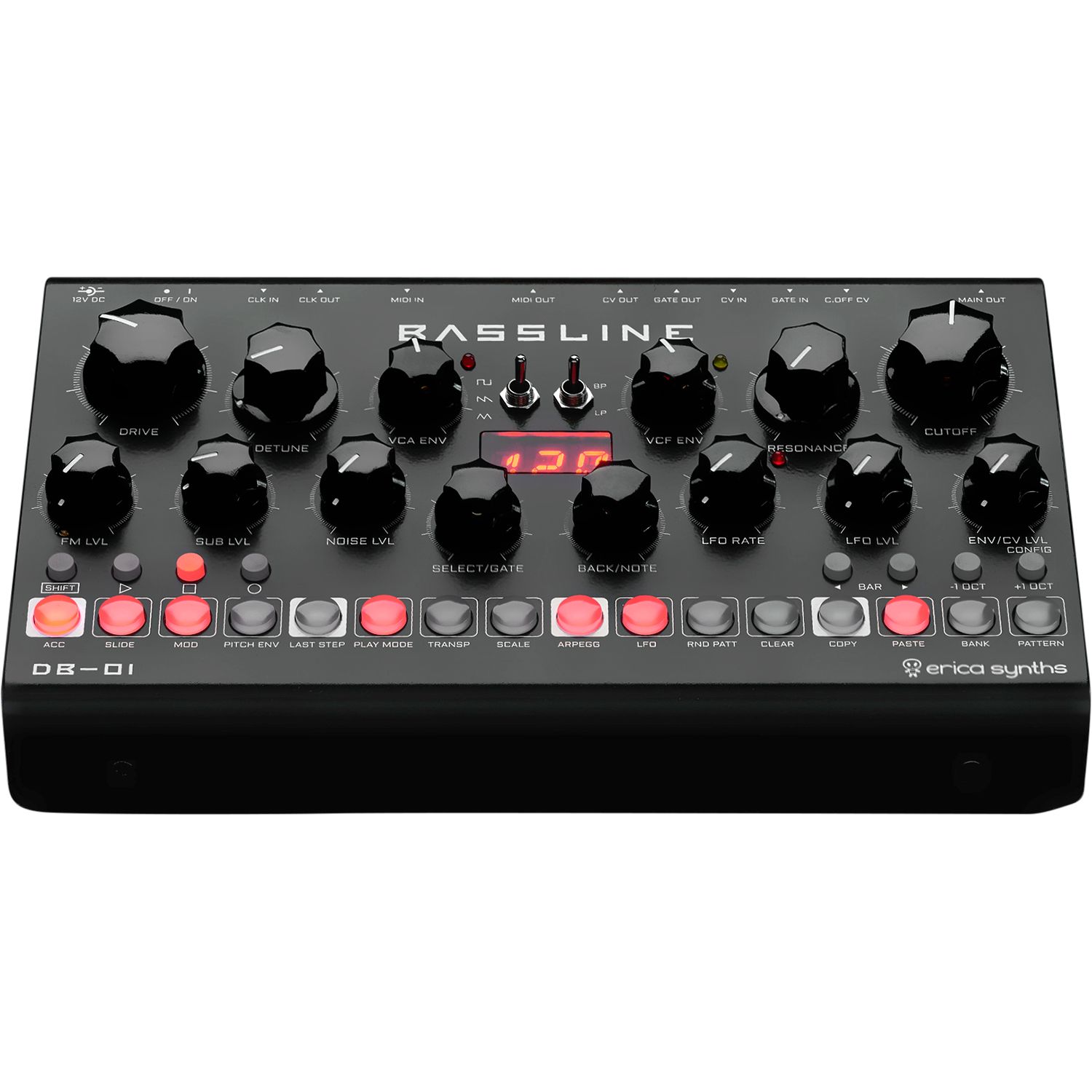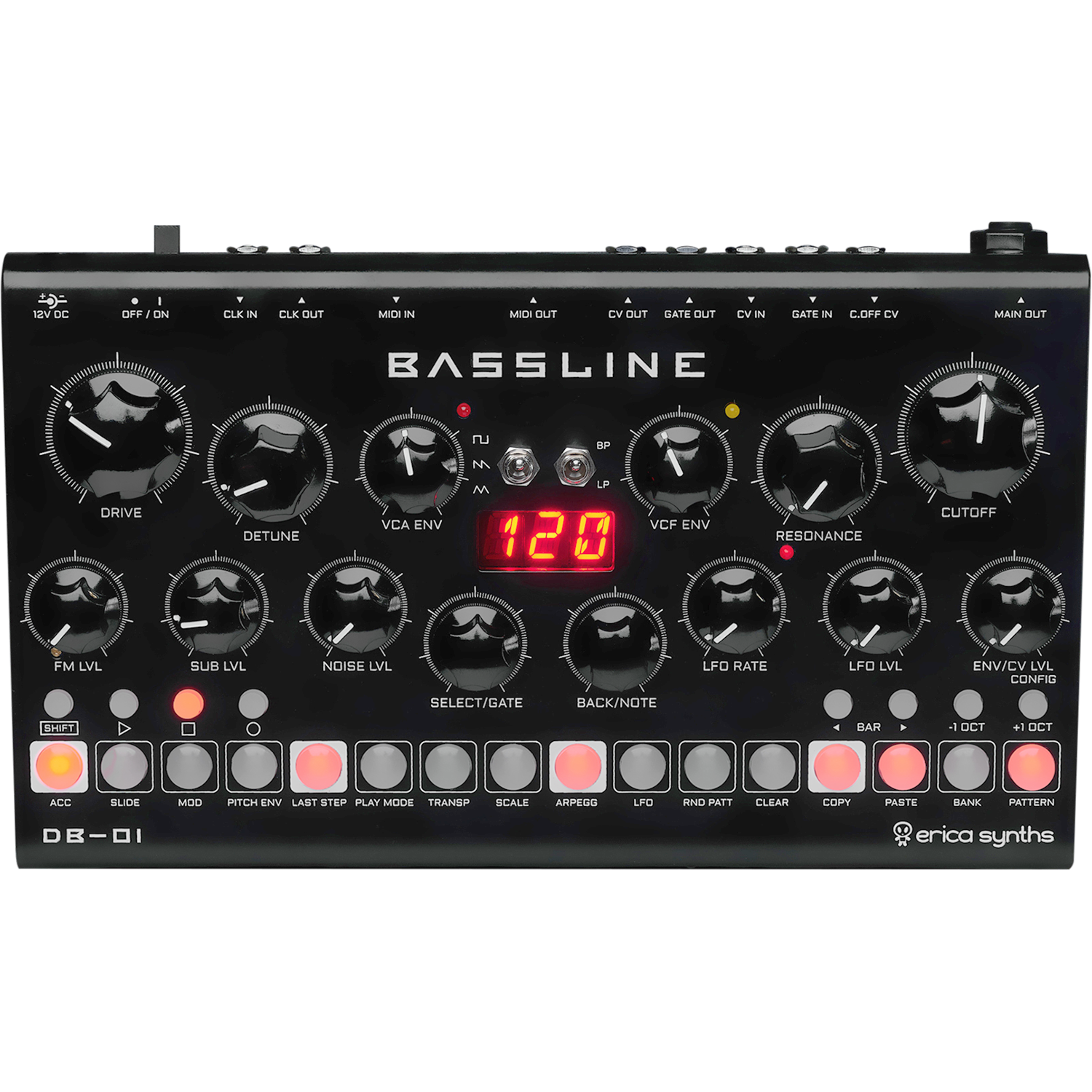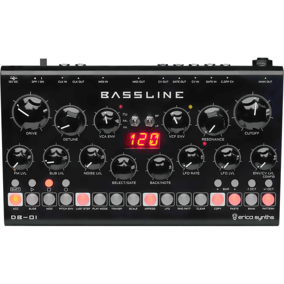 From basslines and rave sounds to massive drones and drums - the Erica Synths Bassline DB-01 synthesizer lets you explore new territories of sound and performance techniques and go from a melody to noise and back in no time. The DB-01 packs an analogue Erica Synths signature sound engine with an advanced sequencer on top of it.