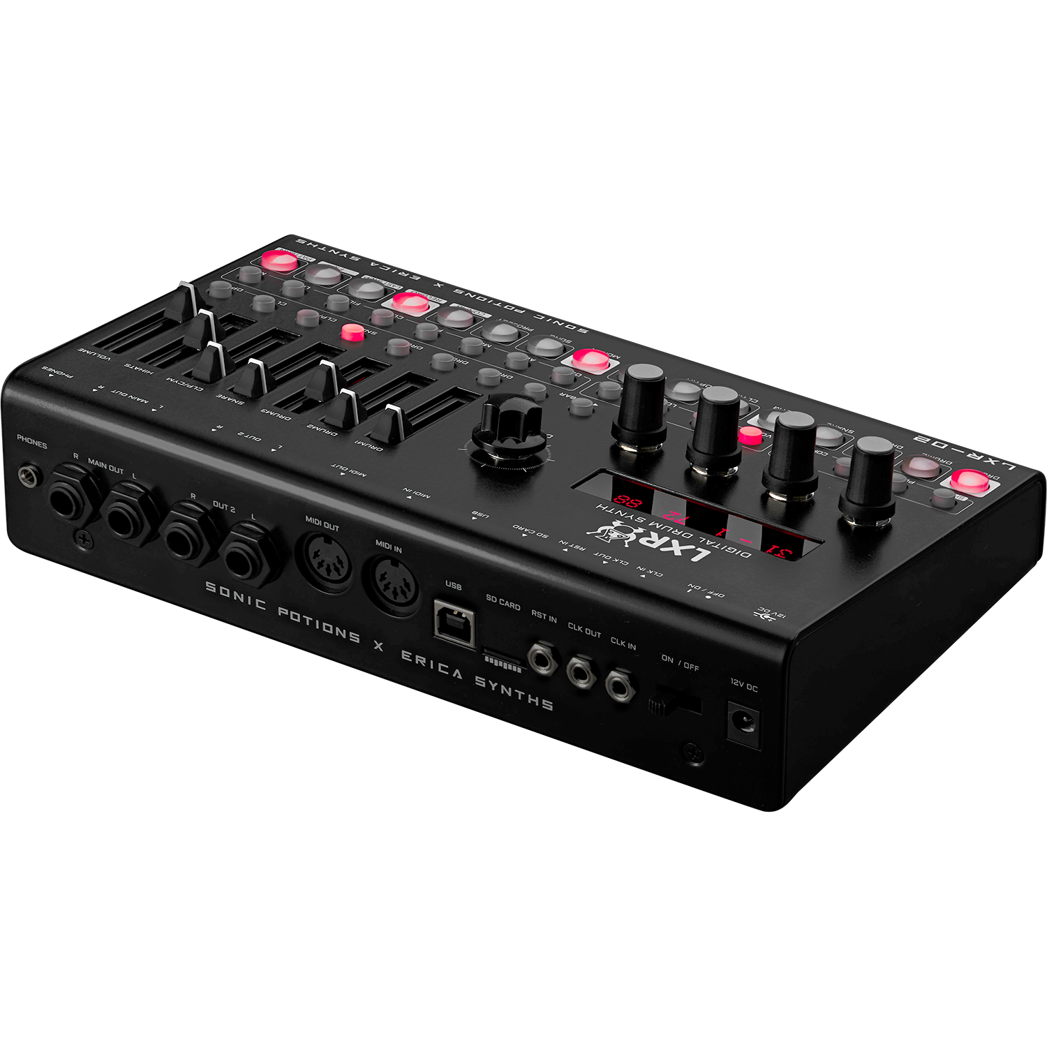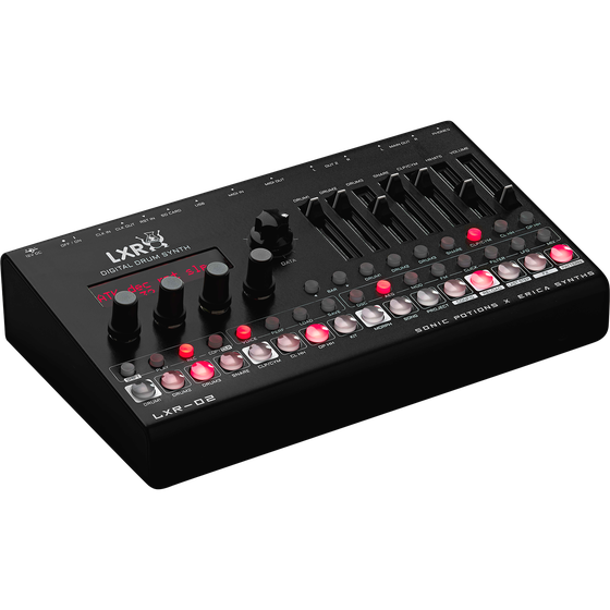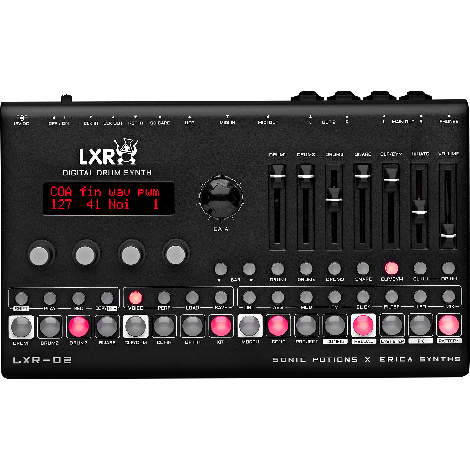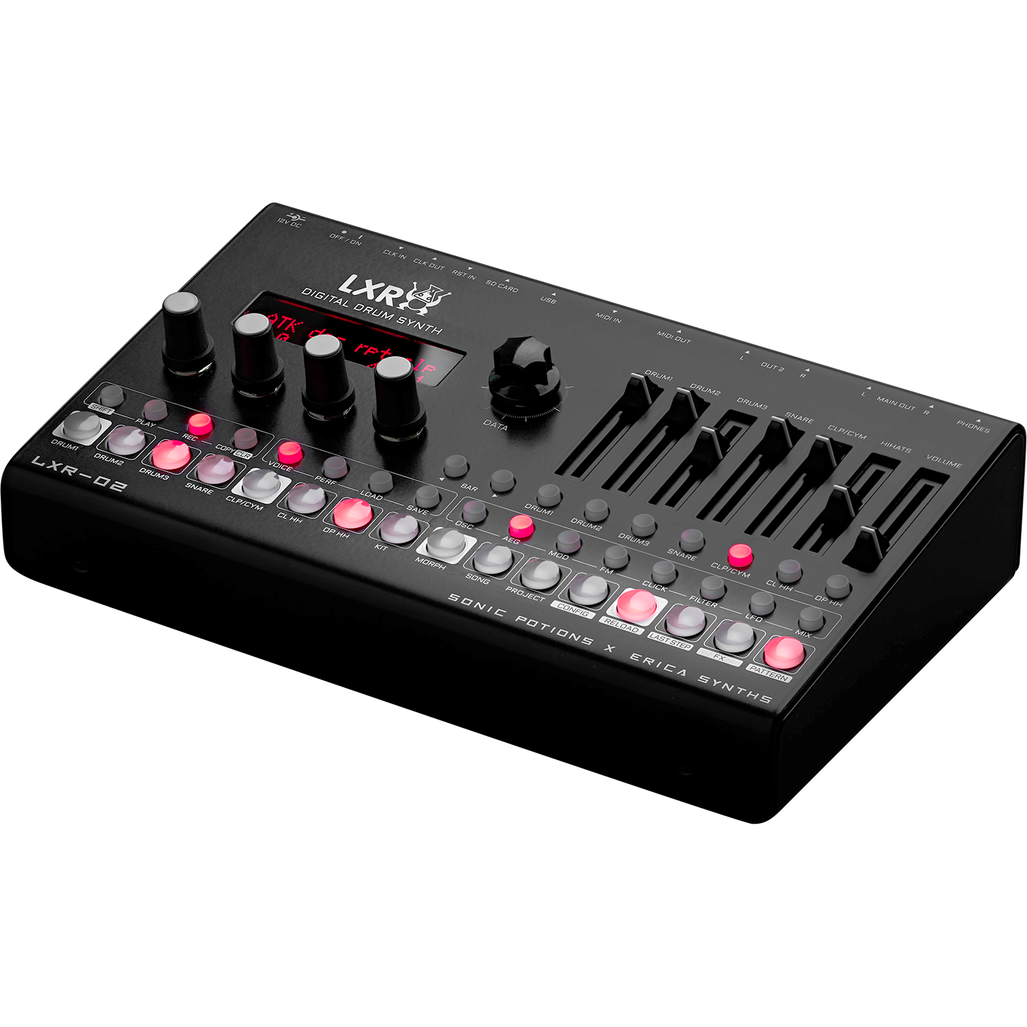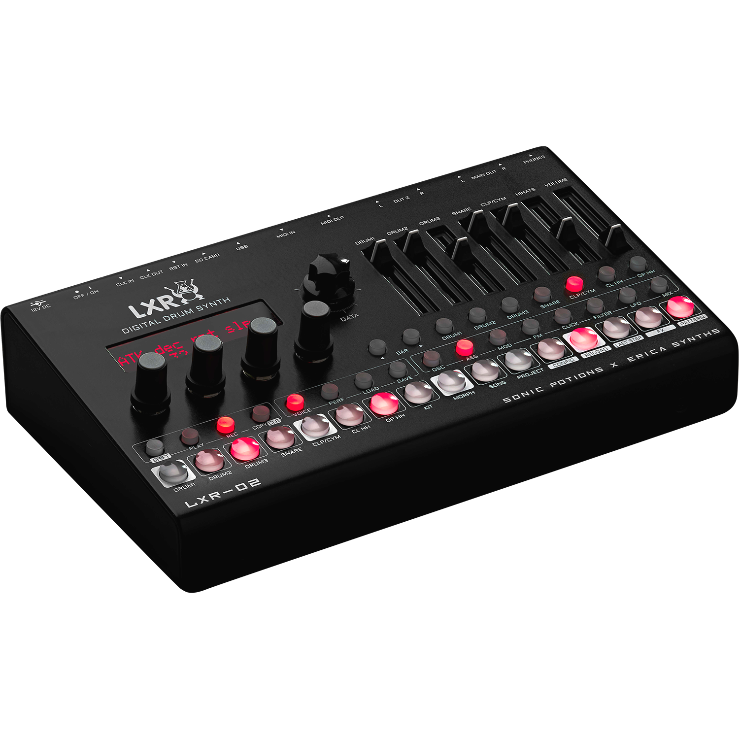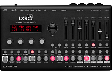 Two companies - Sonic Potions and Erica Synths joined efforts to develop a drum machine that would stand apart from the masses and the LXR-02 was born. The LXR is a full-fledged digital drum machine with an integrated sequencer. Its sound engine provides 6 different instruments, each with over 30 parameters to tweak, producing sounds from classic analog emulations to crunchy digital mayhem, thus offering some of the most extensive sound design capabilities found on a drum synthesizer. Its compact, durable design and clear user interface make it ideal for live gigs.