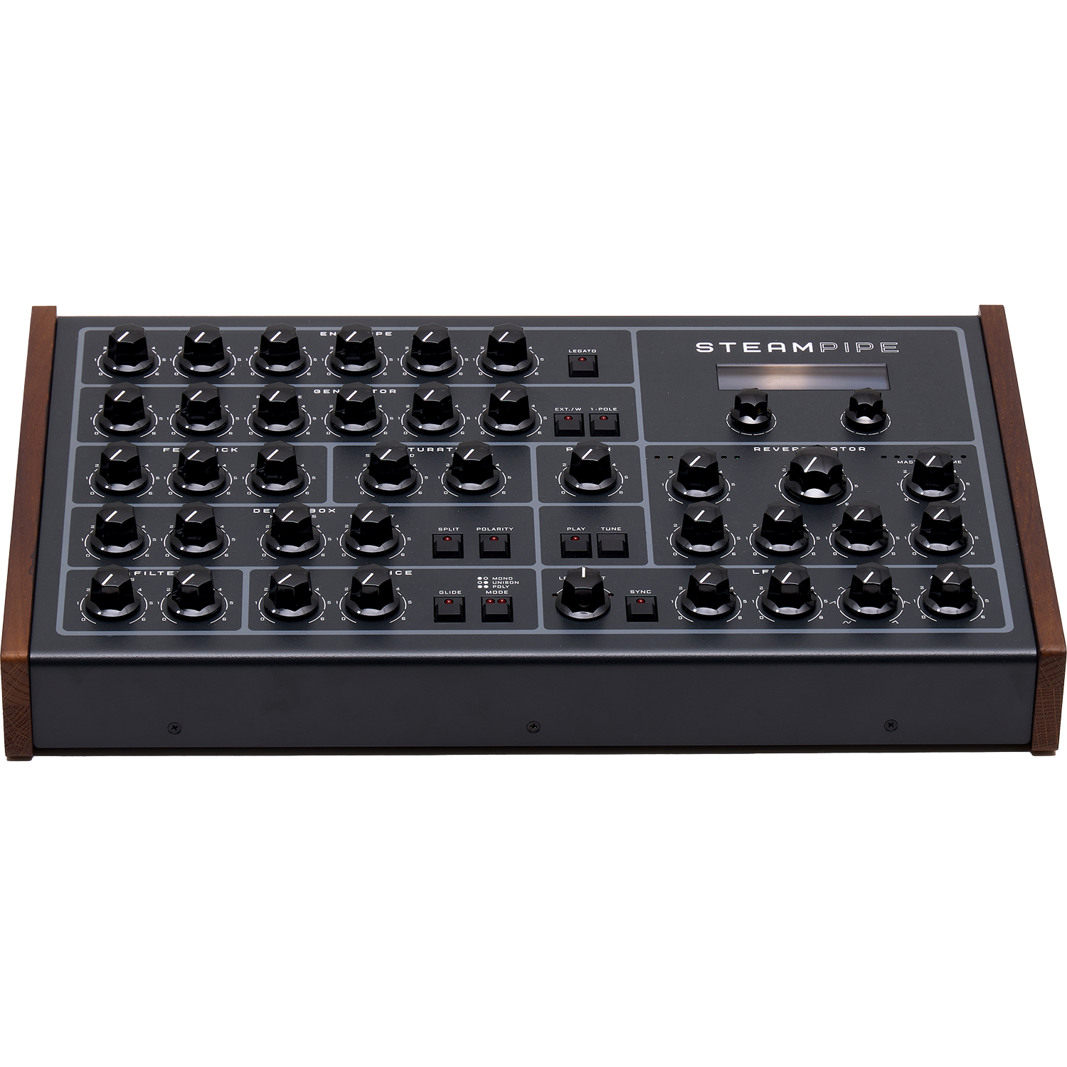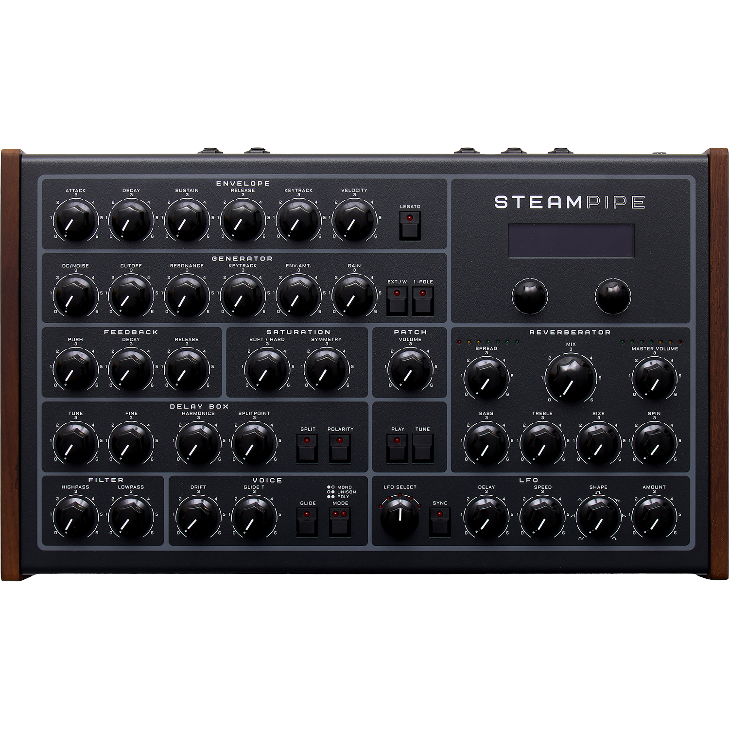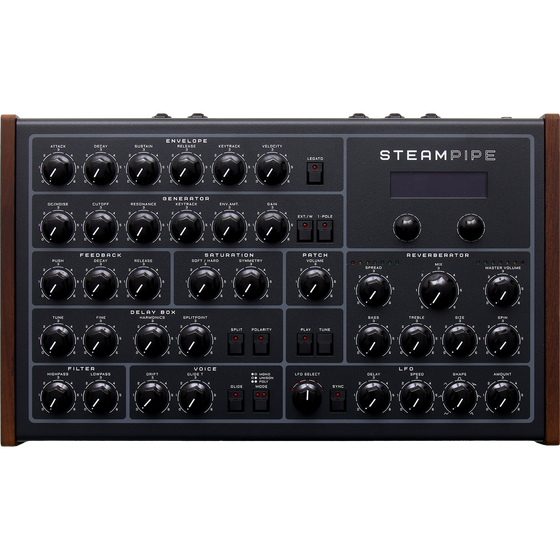The Steampipe is an 8-voice polyphonic synthesizer, but it has no conventional oscillators. Instead, it mimics the way sound is created in wind and string instruments and it is fine-tuned to create a wide range of sounds. The Steampipe is optimized for performance with wind MIDI controllers and it works great with any MIDI keyboard. The overtones the Steampipe produces are very organic and rich. It also comes with great-sounding presets.