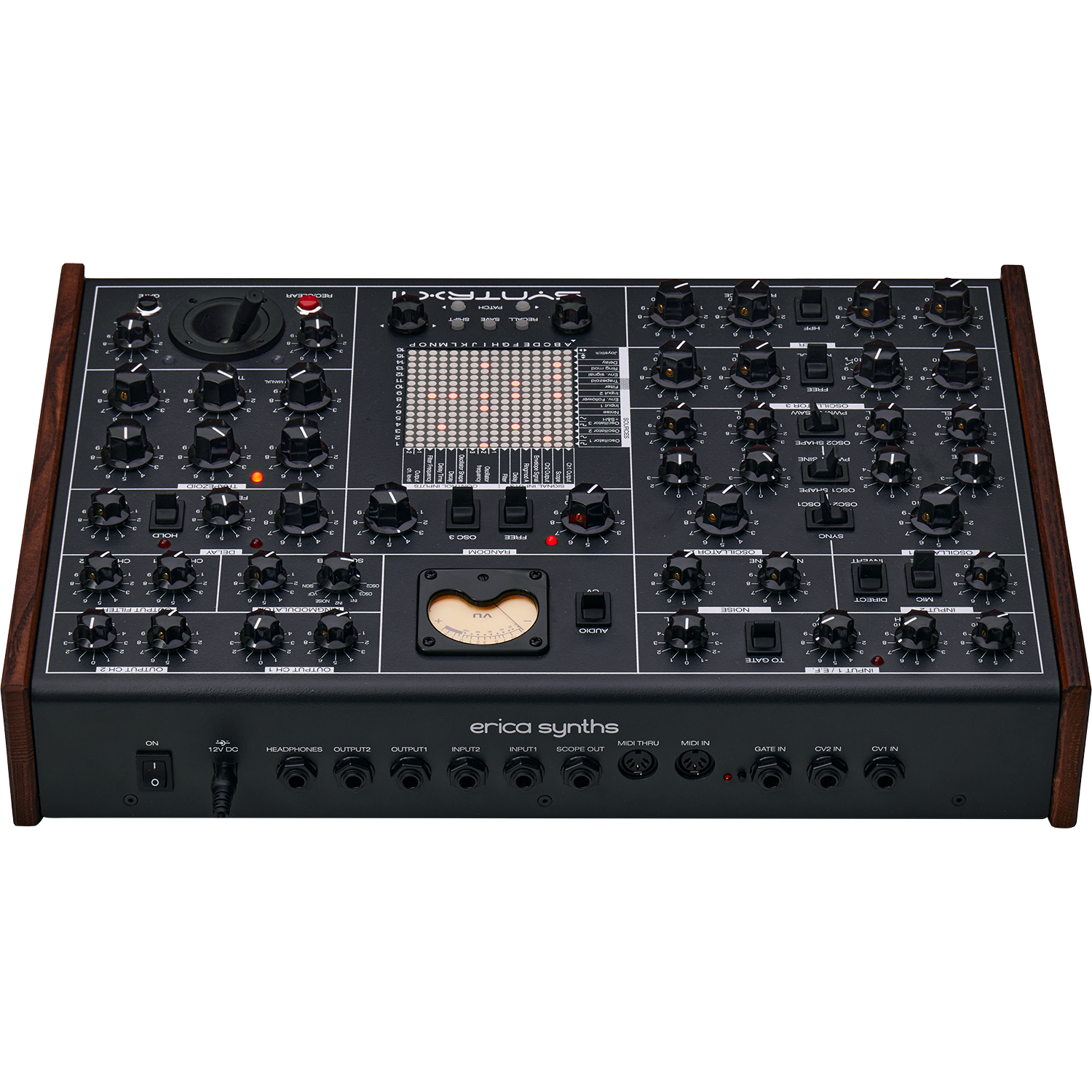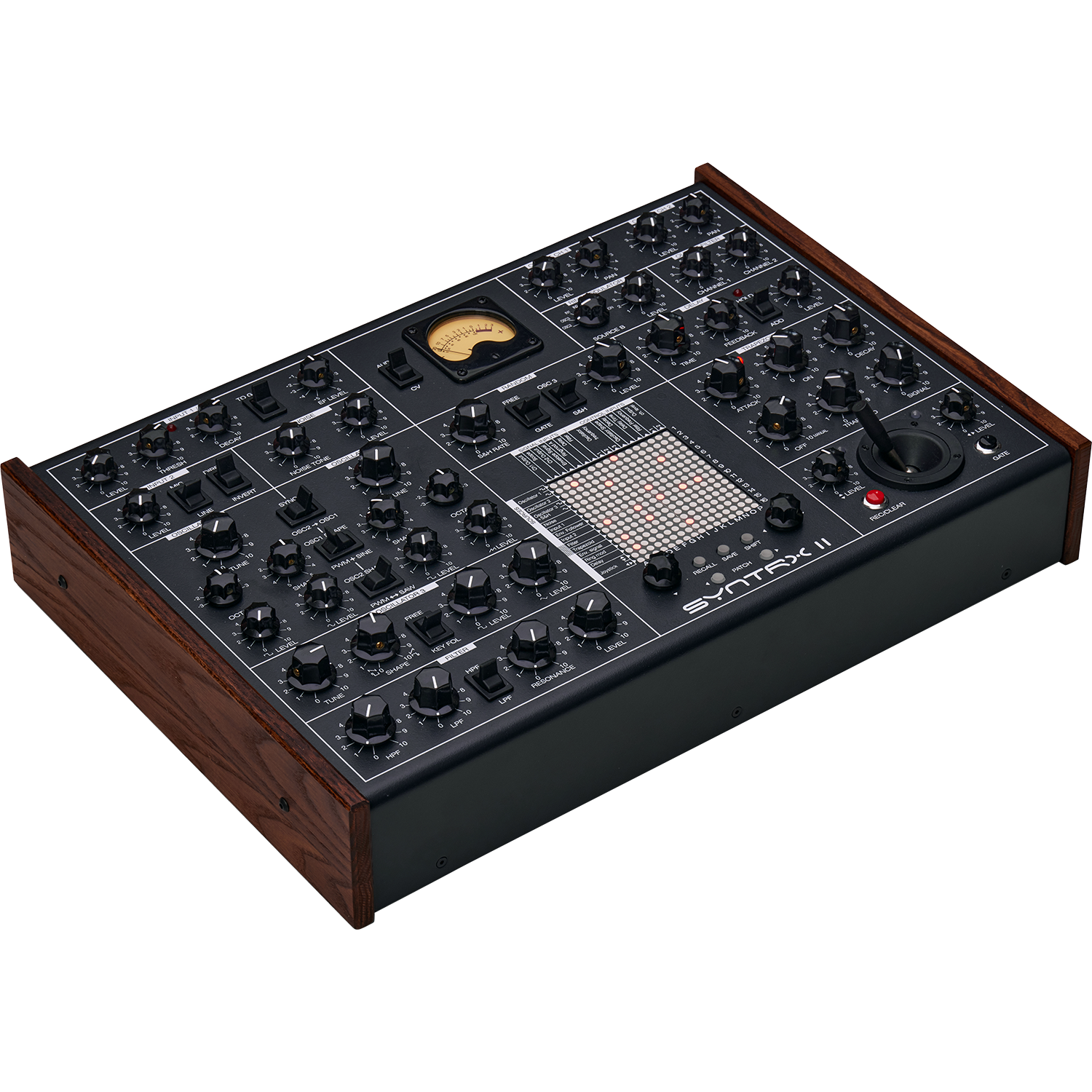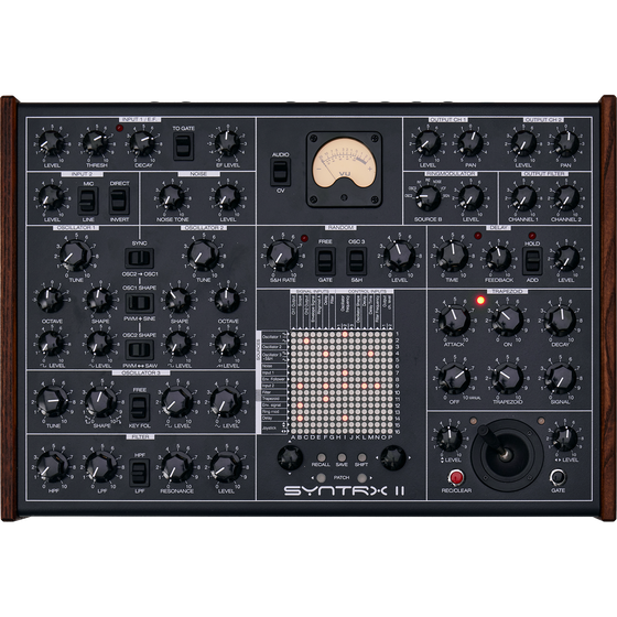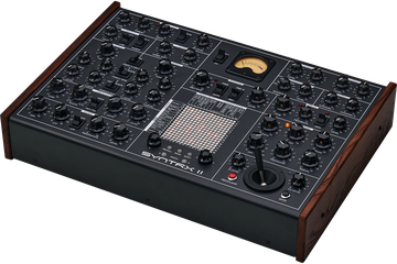 The SYNTRX II is the culmination of our analogue sound design circuits – two perfectly stable main oscillators with waveshapers, a modulation oscillator with 1V/oct tracking, a versatile multimode filter, supercharged external instrument inputs with an envelope follower, a unique, great-sounding ring modulator, a recordable joystick, built-in piano roll sequencer and stepped modulation sources, all arranged around our signature matrix mixer and topped off with powerful FX on our new DSP platform.