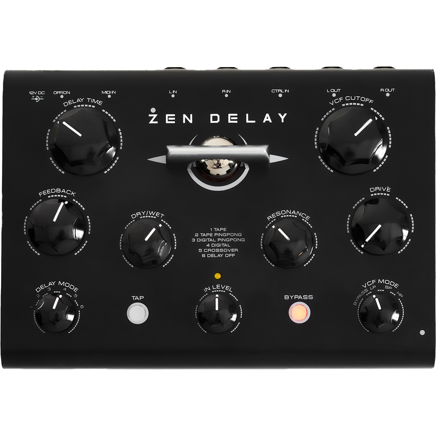 Bringing together the best of the digital and analogue worlds, the Zen Delay is a BPM-synced stereo delay line, combining extreme feedback ranges for dub and experimental lo-fi effects with a multi-mode 24 dB synth filter and valve overdrive.
